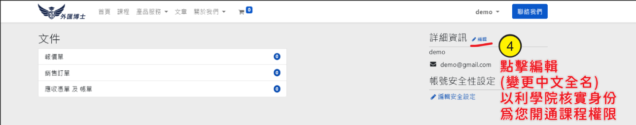 三、【更名】登入後,請更新個人資料需含中文全名、聯絡電話、Email,以利核對身份。